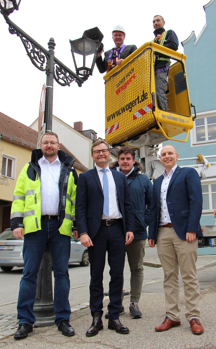 unten (v.l.n.r.): Bayernwerkmitarbeiter Tobias Brockel, Vorstandsvorsitzender Reimund Gotzel, Bauamtsleiter Andreas Pielmeier, Beleuchtungsexperte Daniel Pangerl
