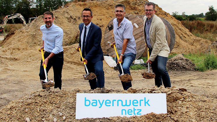 Auftakt für die Stromerschließungsarbeiten im Gewerbegebiet Reichertshofen. Den Spatenstich feierten Josef Bestle, Bayernwerk-Kommunalbetreuer, Bürgermeister Michael Franken, Bayernwerk-Netzplaner Helmut Maier und Sebastian Biegel, Leiter Technik Oberbayern bei der Bayernwerk Netz (von links).