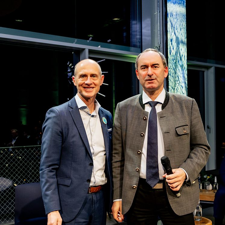 Starke Partner für die Energiewende: Hubert Aiwanger (r.), stellvertretender Bayerischer Ministerpräsident und Staatsminister für Wirt-schaft, Landesentwicklung und Energie, und der Vorstandsvorsitzende der Bayernwerk AG, Dr. Egon Leo Westphal.