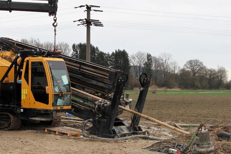 Ein schmaler Bohrkopf mit Spülbohrlösung macht den Weg frei für die spätere Mittelspannungsleitung der Bayernwerk Netz GmbH.
