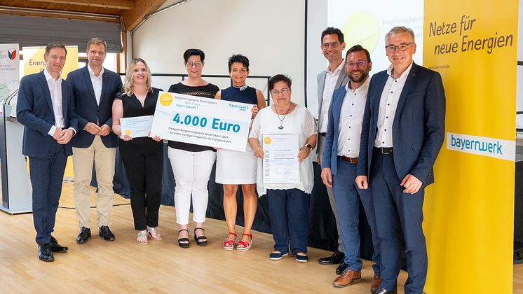 Von links nach rechts: Regierungspräsident Rainer Haselbeck, Bezirkstagspräsident Dr. Olaf Heinrich, Lisa Hemauer, Sabine Ehrenreich, Sabine Dahlke, Manuela Drexler (alle Kindergarten Mengkofen), Markus Leczycki (Bayernwerk Netz GmbH), 1. Bürgermeister Mengkofen, Thomas Hieninger, Landrat Werner Bumeder, Landkreis Dingolfing-Landau.