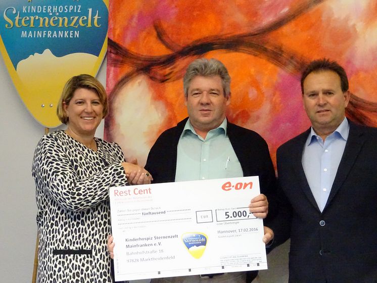 Die Spende übergaben die Personalleiterin des Bayernwerks, Sigrid Nagl, und der unterfränkische Betriebsratsvorsitzende Horst Heid (rechts) an Sternenzelt-Vorsitzenden Stefan Zöller (Mitte).