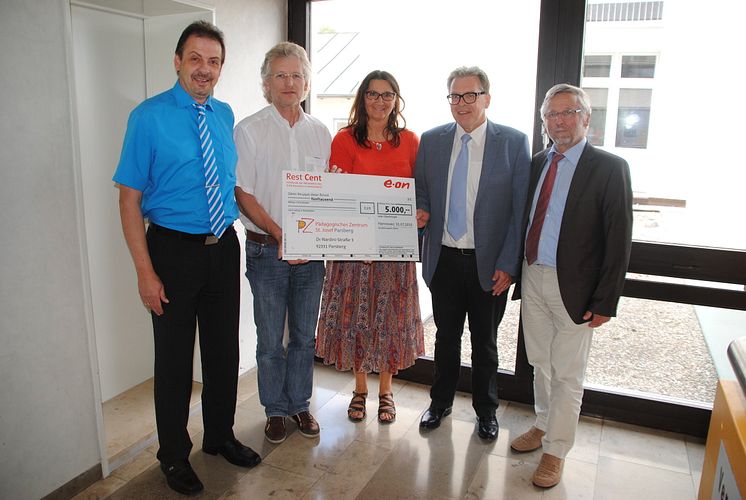 Foto: Spendenübergabe in Parsberg: v.l. Helmut Lehmeyer vom Bayernwerk, Josef Riedl und Birgitt Mederer vom Pädagogischen Zentrum St. Josef, Betriebsratsvorsitzender Albert Zettl und Betriebsrat Ulrich Sendl)