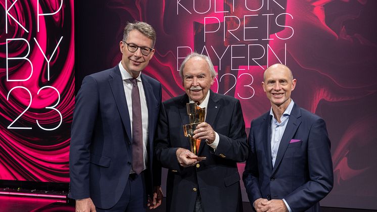 v.l.: Bayerischer Kunst- und Wissenschaftsminister Markus Blume, Preisträger Dieter Hanitzsch und Bayernwerk-Chef Dr. Egon Leo Westphal.