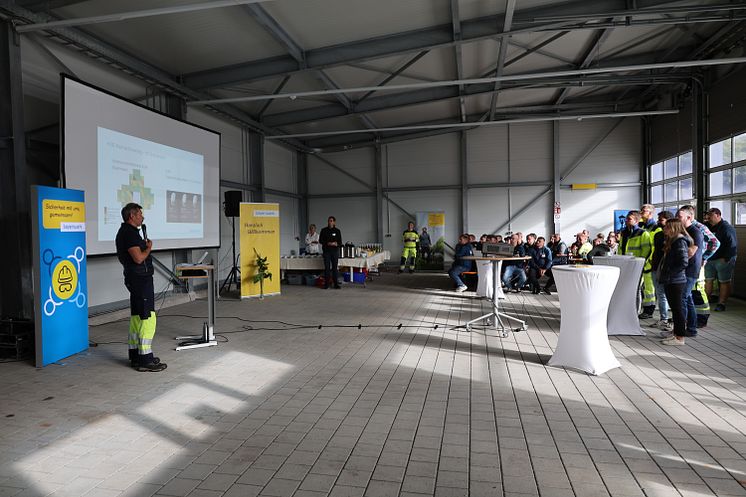 HSE-Tag für Partnerfirmen am Kundencenter der Bayernwerk Netz GmbH in Schwandorf. Kundencenter-Leiter Daniel Liegl begrüßte die Teilnehmenden.