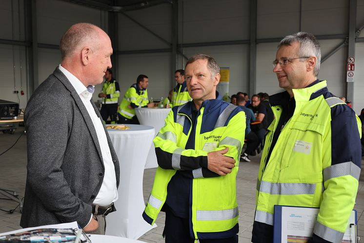 HSE-Tag für Partnerfirmen am Kundencenter der Bayernwerk Netz GmbH in Schwandorf. (Peter Ketterl, Georg Goß und Bernhard Kramer im Gespräch)