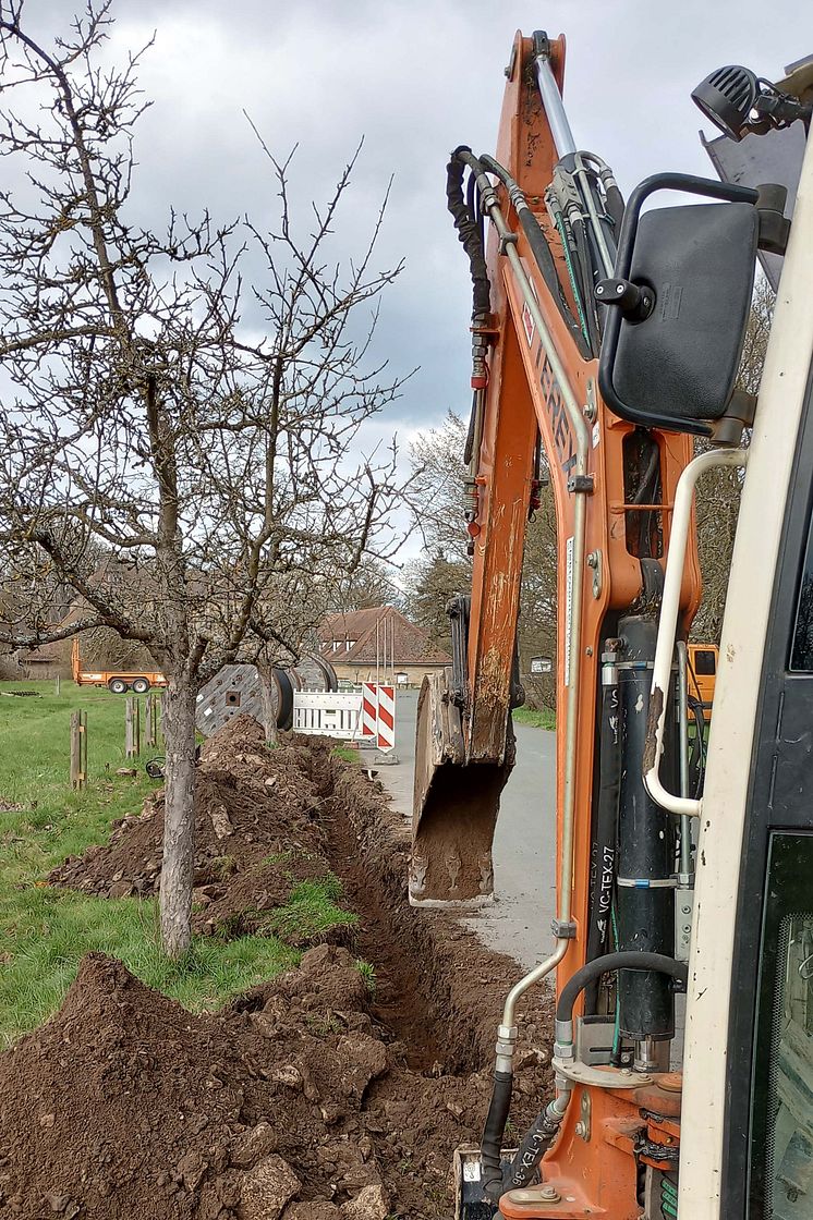 Bau eines Grabens zur Verlegung eines Mittelspannungskabels