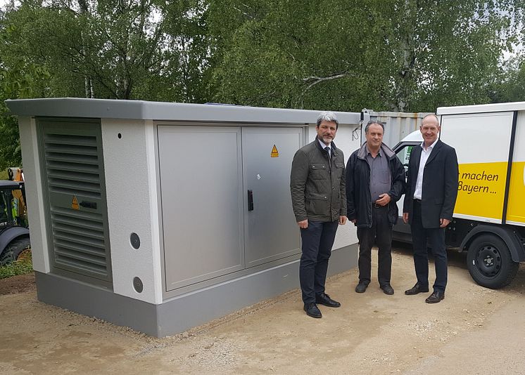 Bei der Einweihung der hochmodernen Anlage waren neben Peter Ketterl, Leiter der Netzdienste Oberpfalz des Bayernwerks (rechts), Erster Bürgermeister von Furth im Wald, Sandro Bauer (links) und Franz Huttner, Netzbau Bayernwerk-Kundencenter Schwandorf (Mitte) vor Ort.
