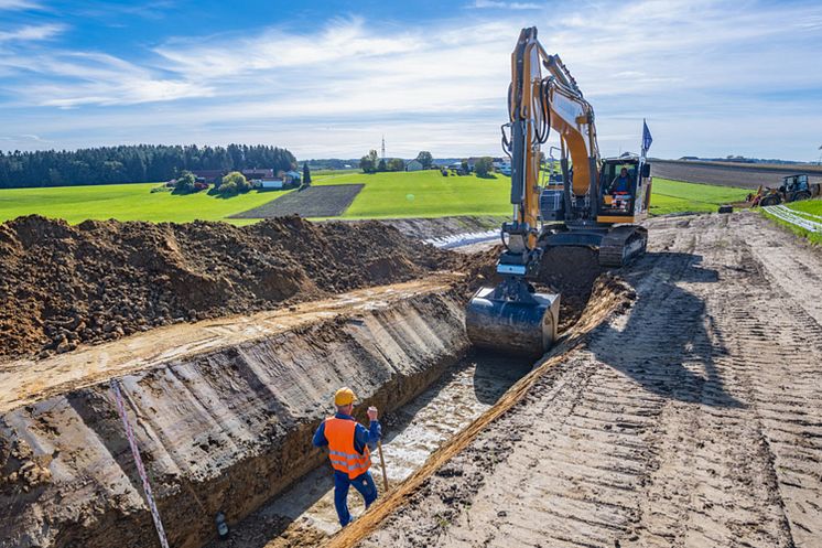 Für das neue Hochspannungserdkabel wird ein 1,75 Meter tiefer Graben ausgehoben, wie hier bei einer Baustelle der Bayernwerk Netz GmbH in Niederbayern.