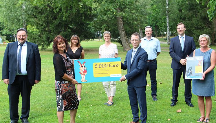 (v.l.n.r.) Bürgermeister Thomas Beer, Leiterin der Stadtbücherei Erika Reindl, Büchereimitarbeiterin Tanja Emmert, Leiterin der Landesfachstelle Öffentliche Bibliotheken Regensburg Doris Glonegger, Bayernwerk-Leiter des Bereichs Kommunen und Konzessionen Ostbayern Dr. Andrè Zorger, Stadtkämmerer Georg Beer, Bayernwerk-Kommunalbetreuer Wolfgang Dumm, Büchereimitarbeiterin Pia Pielmeier