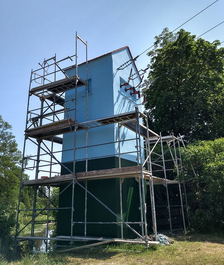 Technik schön sichtbar machen. Bevor das Postkartenmotiv von den ART-EFX-Künstlern an der Trafostation des Bayernwerks in Etzenricht (Lkr. Neustadt an der Waldnaab) gesprayt werden konnte, wurde die Station saniert und grundiert.