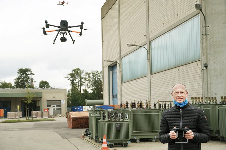 Bayernwerk-Technikvorstand Dr. Egon Leo Westphal bei der Drohnenschulung am Standort Pfaffenhofen an der Ilm.