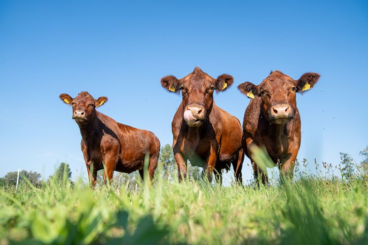 Auf der Suche nach Leckerbissen: Die Angus-Rinder auf der Ökokontofläche wählen die besten Gräser und Kräuter aus und sorgen dadurch auf der Fläche für Strukturreichtum.