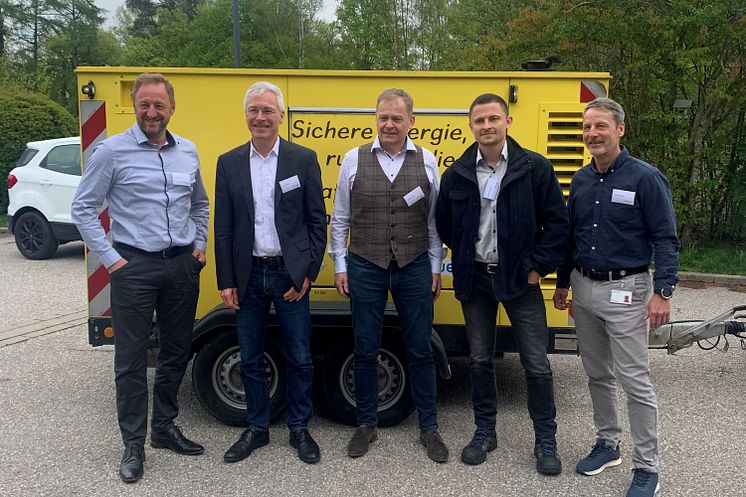 Die Bayernwerk Netz hat am Dienstag, 02.05.2023 den Netzausbau in der Region Ampfing vorgestellt. Von links: Kundencenterleiter Thomas Späth, Kommunalmanager Armin Irlbeck, Leiter Hochspannung und Spezialnetze Günther Mertel, Leiter Service Strom Dmitri Trautmann, Leiter Planung, Bau & Netzkundenbetreuung Matthias Urban.