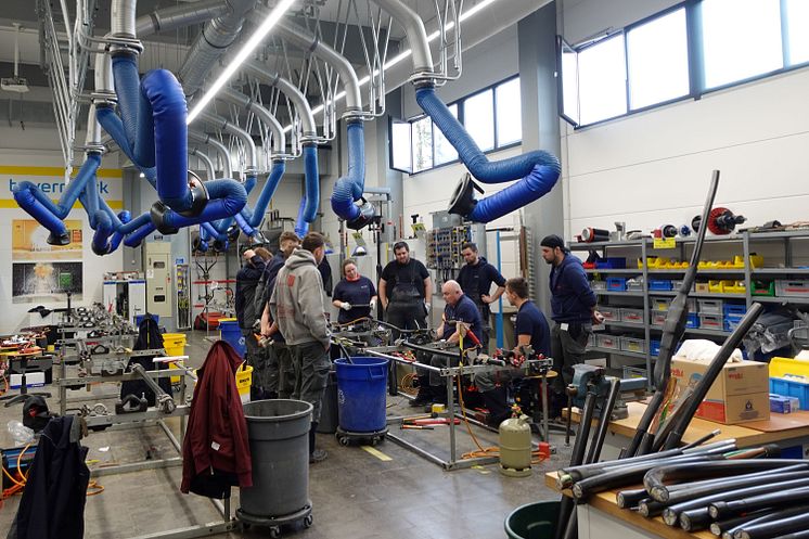 Die Bayerwerk Netz hat am Montag, 24.04.2023 den Netzausbau in der Region Pfaffenhofen a. d. Ilm vorgestellt. Ausbilder Reinhard Allert schult Monteure im Technischen Trainings Center zum Thema Niederspannungsmuffen.