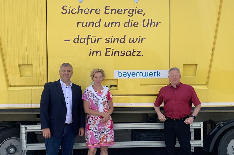 Die Bayernwerk Netz hat am Donnerstag, 22.06.2023 den Netzausbau in der Region Unterschleißheim vorgestellt. Von links: Leiter Kundencenter Unterschleißheim Giovanni D'Annibale, Leiterin Kommunalmanagement Oberbayern Silke Mall, Leiter Grundsatz- & Genehmigungsmanagement Dr. Peter Volkholz.