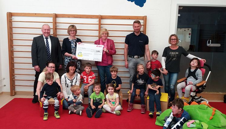Die Bayernwerkvertreter Richard Schlamp und Beate Rubenbauer (hintere Reihe von links) übergaben den Scheck über 5.000 Euro an die Vereinsvorsitzende Bettina Brühl (Mitte).