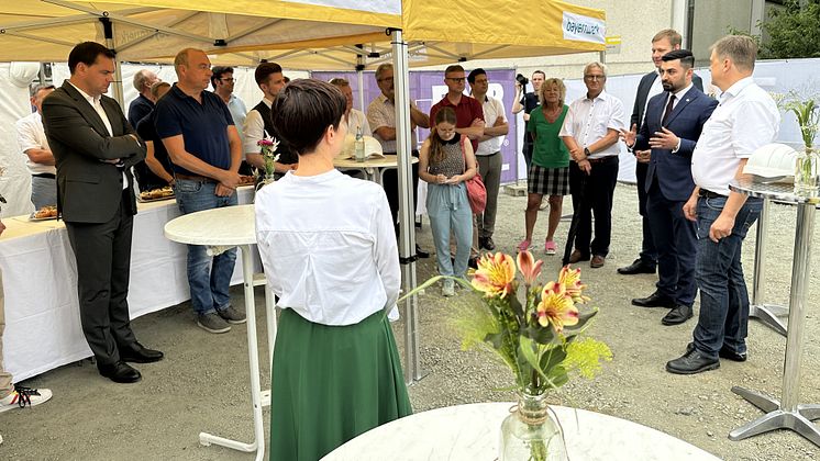 Wie gelingt die Energiewende in Niederbayern? Dazu tauschen sich die Gäste beim Spatenstich zur Erneuerung des Umspannwerks Grafenau aus.