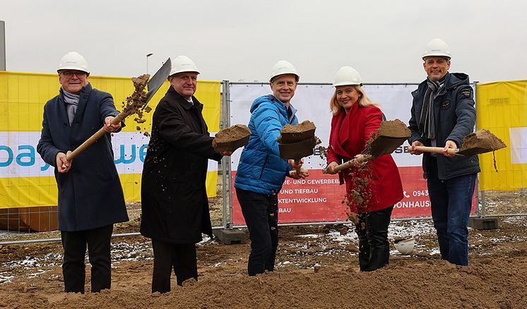 Start für den Bamberger Neubau der Bayernwerk Netz: Oberbürgermeister Andreas Starke, stv. Landrat Bruno Kellner, Bayernwerk-Vorstandschef Egon Westphal, Staatsministerin Melanie Huml und Projektleiter Thomas Richter (v.l.).