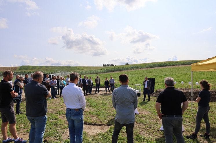 Rund 30 Gäste aus dem Ruhstorfer Gemeinderat, dem Bayernwerk sowie dem Bayerischen Landtag feierten den Spatenstich für drei neue Photovoltaik-Parks im Ruhstorfer Gemeindegebiet.