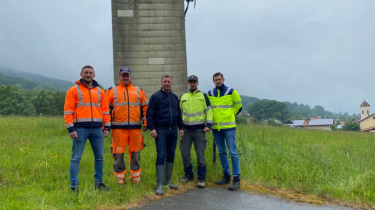 Modernes Stromnetz für Hunding. V.l.n.r.: Martin Denk (Bauleiter Fa. Kloiber Bau), Lukas Penn (Polier Fa. Kloiber Bau), Thomas Straßer (1. BGM Gemeinde Hunding), Felix Kutz (Bayernwerk), Peter Schober (Bayernwerk). Foto: Florian Uhrmann, Firma Bachl