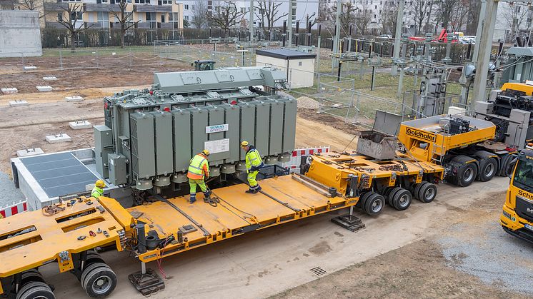 Trafolieferung im Umspannwerk in der Regensburger Lilienthalstraße