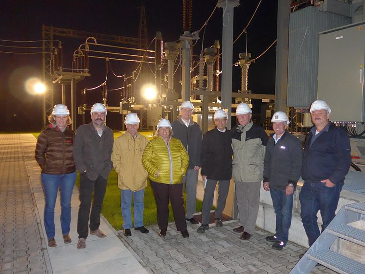 Bürgermeisterin Barbara Bogner gemeinsam mit Vertretern des Bayernwerks, der Verwaltung und interessierten Gemeinderäten.