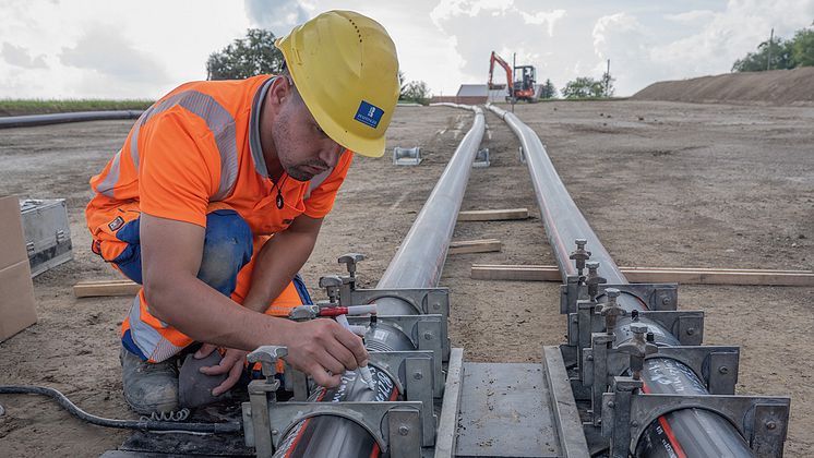 Vorbereitung von Leerrohren für ein 110-kV-Kabel auf einer Baustelle in Niederbayern im Herbst des Jahres 2022.