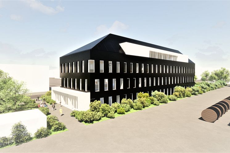 Fassade mit Solar-Kollektoren: So soll der Bamberger Neubau der Bayernwerk Netz aussehen. Am Montag, 6. Februar, hat der Bau mit dem offiziellen Spatenstich begonnen.