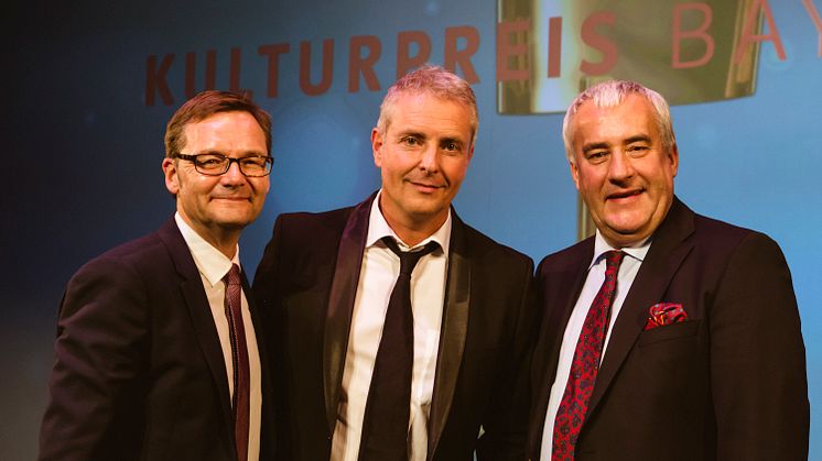 Der Dirigent Alexander Liebreich (Mitte) hat den diesjährigen Sonderpreis aus den Händen des bayerischen Kunstministers Dr. Ludwig Spaenle (r.) erhalten. Erster Gratulant war Bayernwerk-Vorstandsvorsitzender Reimund Gotzel.