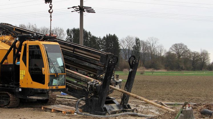 Auch wenn das Verfahren bewährt ist, jede Bohrung ist für sich aufgrund der unterschiedlichen Bodenverhältnisse einzigartig. Die Arbeiten in Marktl sind besonders anspruchsvoll, weiß Bayernwerk-Projektleiter Michael Jetzlsperger: „Bei der Unterquerung des Innwerkskanals sowie eines Kanalbauwerkes des Marktes Marktl am Inn werden die Kabel unter- und nicht nebeneinander eingebracht, um das Baufeld optimal zu nutzen.“ Laut Michael Jetzlsperger überwindet der Bohrkopf im Gelände einen Höhenunterschied von rund 50 Metern. Präzises Arbeiten ist besonders wichtig. Gerade die sogenannte Pilotbohrung ist entscheidend für den Projekterfolg. Ein schmaler Bohrkopf mit Peilsender bereitet den Weg vor. Durch Spülungen und immer größere Bohrkopfaufsätze wird der Kanal dann Stück für Stück geweitet.
