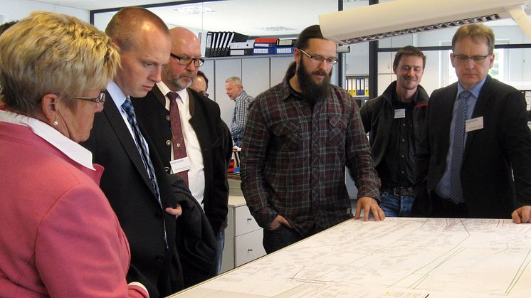 Neben Fachvorträgen bekamen die 16 Kommunalvertreter aus dem Landkreis Kronach einen Einblick in die Abläufe des Netzcenters Naila und in die Technik eines 110 kV/20 kV-Umspannwerks. Techniker und Mitarbeiter um Markus Seidel vom Netzcenter Naila stellten sich und ihre Projekte aus diversen Bereichen vor. „Das Netzcenter ist ein technisches Bindeglied zwischen den Kommunen und dem Netzbetrieb. Hier werden Straßenbeleuchtungsprojekte und Leitungsbaumaßnahmen geplant sowie außerdem die technische Unterstützung für Störfälle vorgehalten“, erläuterte Markus Seidel. Die Bürgermeister und Geschäftsstellenleiter konnten sich unter anderem ein Bild davon machen, wie die Odorierung von Erdgas funktioniert, welche Gerätschaften beim Reparieren von Leitungen zum Einsatz kommen und darüber hinaus mit dem Elektroauto des Netzcenters eine Proberunde drehen.