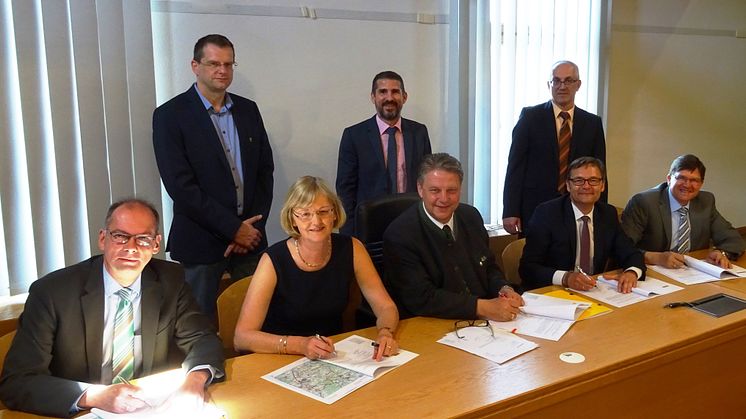 Die Bürgermeister Jens Machold (Wolnzach), Peter Keck (Rohrbach) und Albert Vogler (Schweitenkirchen) unterzeichneten am Dienstag im Wolnzacher Rathaus im Beisein des Bayernwerk-Vorstandsvorsitzenden Reimund Gotzel, von Ursula Jekelius, Leiterin für Kommunen und Kooperationen in Oberbayern beim Bayernwerk, Johann Blank, Leiter der Netzdienste Oberbayern Nord beim Bayernwerk, sowie Bayernwerk-Kommunalbetreuer Josef Bestle die neuen Konzessionsverträge. Die drei Kommunen räumen darin dem Bayernwerk das Recht ein, für die kommenden 20 Jahre das Stromnetz auf ihrem Gemeindegebiet zu betreiben sowie Versorgungsanlagen und Leitungen auf gemeindlichen Grundstücken und Wegen zu bauen.