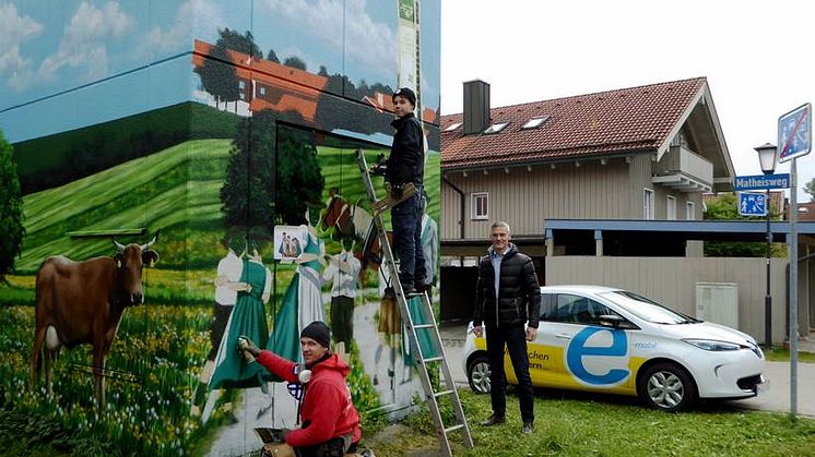 In der oberbayerischen Gemeinde Otterfing im Landkreis Miesbach haben die professionellen Sprayer der Firma Art-EFX im Auftrag des Bayernwerks vor Ort gewirkt. Sie gaben der Turmstation Im Kirchwinkel mit verschiedenen Lacken aus der Spraydose ein lebhaftes Gehäuse. Hier im Zentrum der Gemeinde bannten die Künstler das Ortspanorama täuschend echt auf die Wände der Station. Der Otterfinger Bürgermeister Jakob Eglseder und Bayernwerk-Kommunalbetreuer Alexander Usselmann schauten den Sprayern bei der Fertigstellung des Kunstwerks über die Schulter. „Die Erarbeitung des künstlerischen Konzepts und schließlich die Motivauswahl erfolgt in enger Abstimmung mit der Kommune“, erklärte der Vertreter des Bayernwerks.