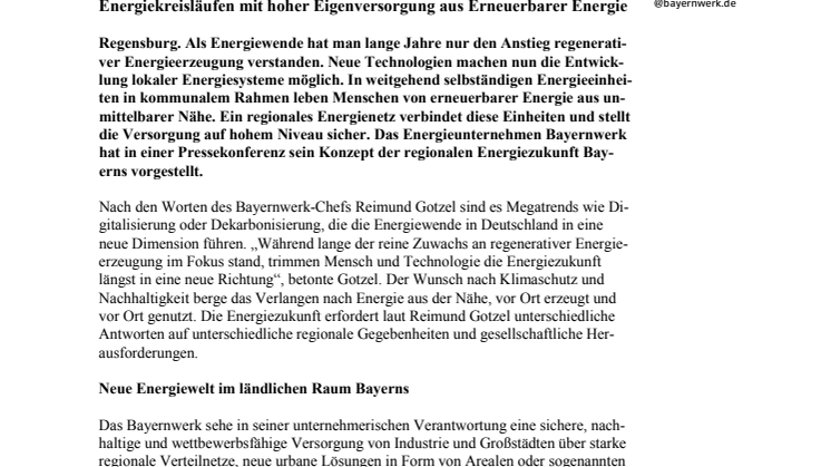Neue Energie für Bayern – Bayernwerk sieht Energiezukunft in lokalen Energiekreisläufen mit hoher Eigenversorgung aus Erneuerbarer Energie