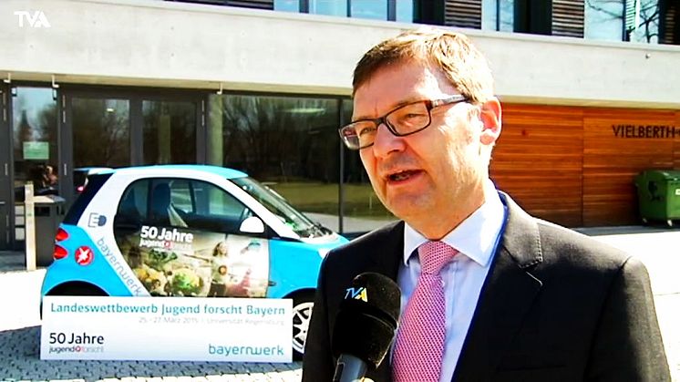 Foto: Uni-Präsident Prof. Dr. Udo Hebel und Reimund Gotzel, Vorstandsvorsitzender der Bayernwerk AG geben den Startschuss zum anstehenden Landeswettbewerb in Regensburg